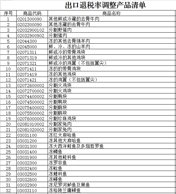 以下貨物的出口退稅率調(diào)整為11%。出口貨物適用的出口退稅率,以出口貨物報(bào)關(guān)單上注明的出口日期界定。