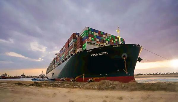 “長(zhǎng)賜”號(hào)自2021年3月23日起在蘇伊士運(yùn)河擱淺6天,造成運(yùn)河交通嚴(yán)重堵塞。船舶脫淺后被埃及蘇伊士運(yùn)河管理局扣押,該局向“長(zhǎng)賜”號(hào)船主索賠超9億美元,以彌補(bǔ)停航造成的損失。