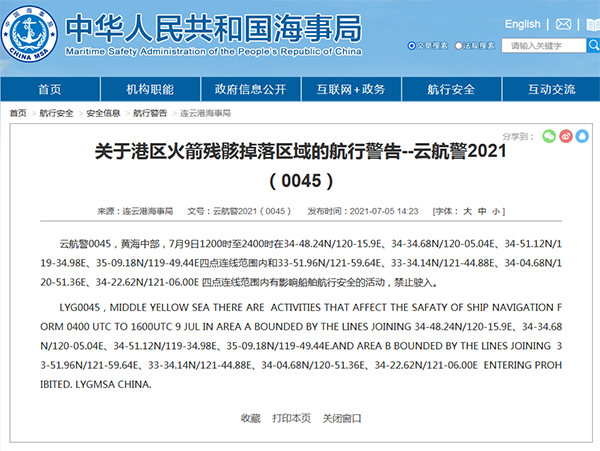 三、關(guān)于港區(qū)火箭殘骸掉落區(qū)域的航行警告--云航警2021(0045)