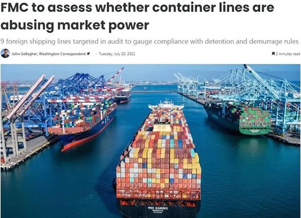 美國聯(lián)邦海事委員會(huì)(FMC)日前告知在美國經(jīng)營業(yè)務(wù)的9家最大的集裝箱船公司,在托運(yùn)人、國會(huì)和白宮施加壓力的情況下,該機(jī)構(gòu)將立即開始審計(jì)他們?nèi)绾蜗蚩蛻羰杖滟M(fèi)和滯港費(fèi),以及與持續(xù)的港口擁堵相關(guān)的不合理倉儲(chǔ)費(fèi)。