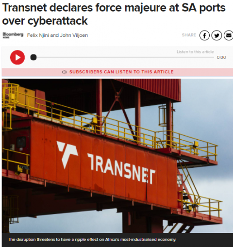 據南非媒體當地時間7月27日報道,南非國有物流公司(Transnet)表示,其主要港口的IT系統(tǒng)近一周來遭受網絡攻擊,涉及德班、恩古拉、伊麗莎白和開普敦等港口,對港口集裝箱運輸產生了巨大影響。