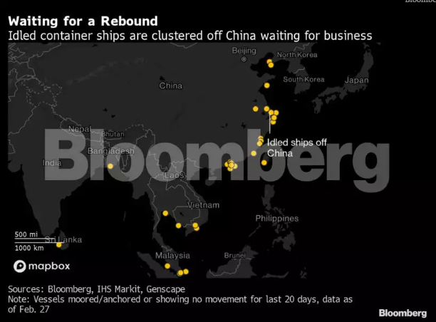 目前全球集裝箱船舶的閑置運(yùn)力已經(jīng)接近疫情開(kāi)始后的最高水平。但彭博社報(bào)道稱,從這些閑置船只聚集在哪里,也可以看出該行業(yè)對(duì)經(jīng)濟(jì)反彈的押注:目前,大量集裝箱船只停靠在中國(guó)附近,等待著這個(gè)全球第二大經(jīng)濟(jì)體經(jīng)濟(jì)的快速?gòu)?fù)蘇,并帶動(dòng)新的出口貿(mào)易流出現(xiàn)。