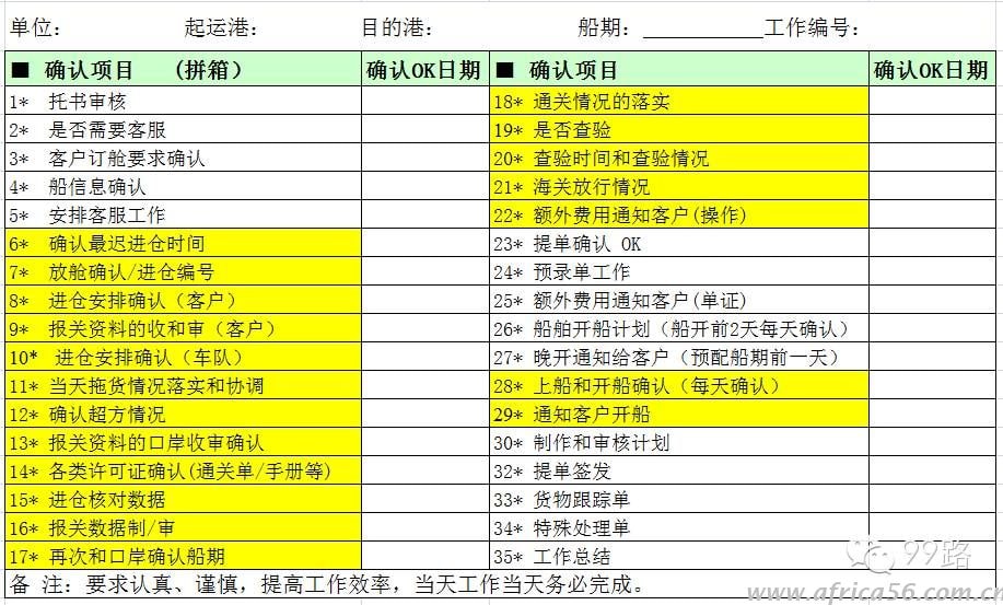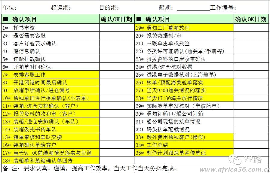 旭洲物流在國際貨運代理行業(yè)干了二十多年,清楚了解一個好貨代應該具備的素質(zhì)與能力,并且掌握一套完整的用于貨代工作人員對業(yè)務流程關鍵點的監(jiān)控的表格,今在此特作分享,用作同行尤其是貨代新手的學習參考用。