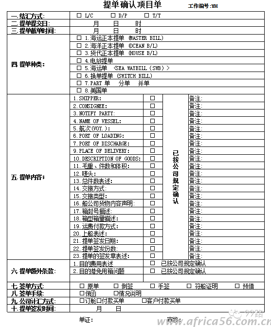 【貿(mào)易干貨】貨代工作常用表格匯總,同行請收好